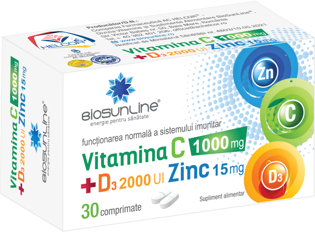 Vitamina C 1000 mg cu D3 2000 UI si Zinc 15 mg
